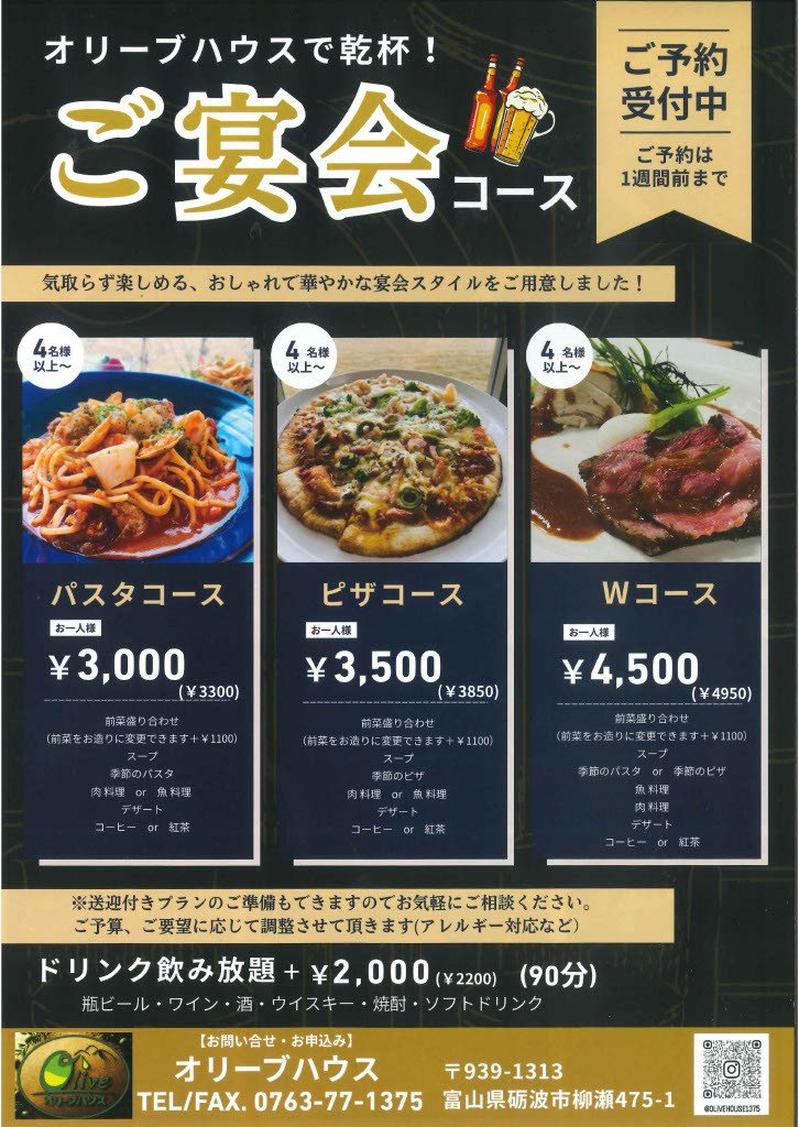 オリーブハウスで乾杯!ご宴会コース
