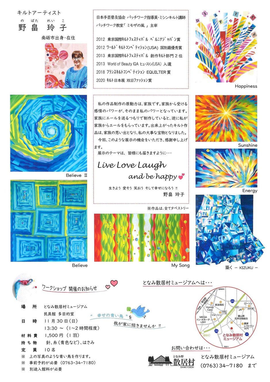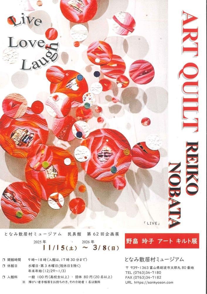 民具館第62回企画展 野畠玲子 アートキルト展 生きよう 愛そう 笑おう!!